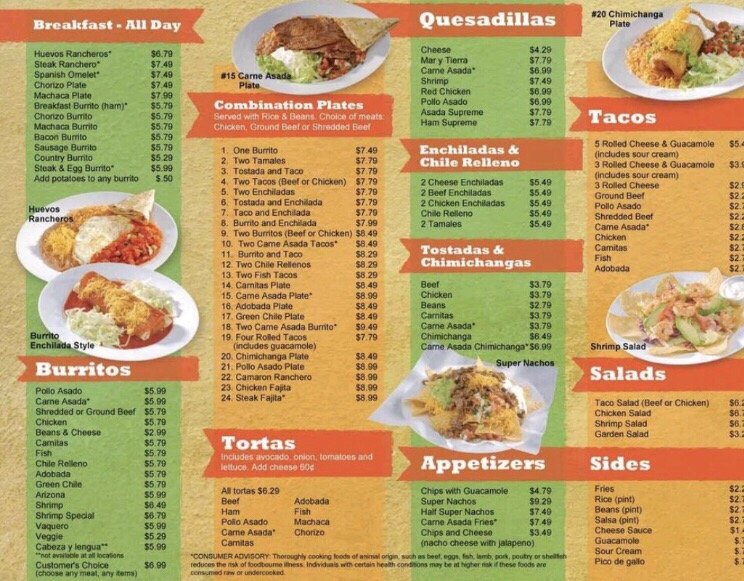 Lina's Mexican Food Menu